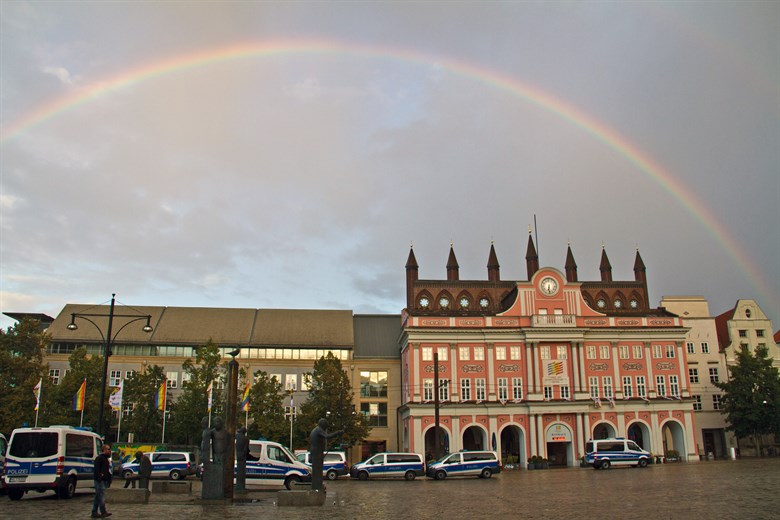 4.000 Menschen stellten sich heute Nachmittag einer AfD-Demo entgegen. Wie schon in den letzten Monaten in anderen Rostocker Stadtteilen hatte die Partei „Alternative für Deutschland“ diesmal vor dem Rathaus zu einer Kundgebung im Zentrum der Hansestadt aufgerufen. Nach Polizeiangaben nahmen 700 Menschen daran teil. Ihr geplanter Marsch um die Innenstadt blieb jedoch auf die August-Bebel-Straße beschränkt. Gegendemonstranten hatten den Weg am Vögenteich blockiert.