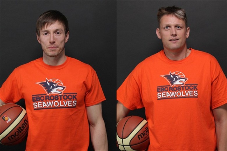 Sven Hellman und Kapitän Jens Hakanowitz spielen auch kommende Saison für den EBC Rostock Seawolves