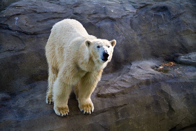 Kinder drücken ihre Nase ans große Unterwasserbecken im Polarium. Spring rein, spring rein, hoffen sie. Schon seit einer Weile schleicht Sizzel am Ufer hin und her, reckt ihre Nase zur Witterung nach oben, wo ein Tierpfleger sie mit Fisch und Spielzeug ins Wasser zu locken versucht. „Sie hat sich über die Sommermonate schon Winterspeck angefressen. Da fragt sie sich natürlich, warum sie da rein gehen sollte“, erläutert Bärenpfleger René Schoknecht den jungen Zoobesuchern. Immerhin im anderen Becken war sie zuvor schon bei ausgiebigen Tauchzügen zu beobachten.