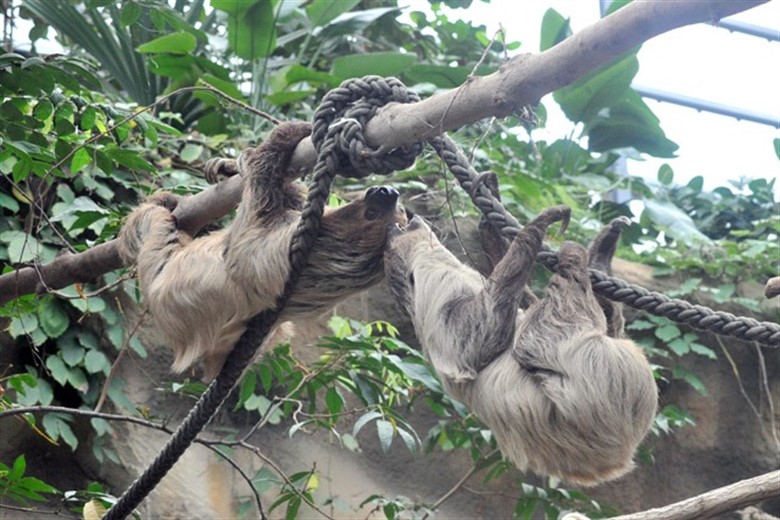 „Obwohl Faultiere eigentlich Einzelgänger sind, vertragen sie sich bei ausreichend Ausweichmöglichkeiten und Rückzugsorten erfahrungsgemäß recht gut“, sagte Kuratorin Antje Zimmermann. „In Vorbereitung auf den Zuwachs haben wir noch etliche Seile zusätzlich gespannt sowie eine weitere Schlafkiste angebracht.“ Sie verwies darauf, dass die Tiere nicht angefasst und gefüttert werden dürfen. „Wer diese Verhaltensregeln beachtet, kann die Faultiere im Darwineum auf einzigartige Weise hautnah erleben.“