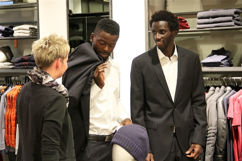 Wer fummelt denn da den Hansaspielern an der Hose herum? Die Modeberaterinnen eines Bekleidungsgeschäftes im KTC haben es heute Mittag bei den Jungs der ersten Mannschaft des F.C. Hansa Rostock auf den Gürtel abgesehen. Der muss bei vielen noch in die richtige Länge gebracht werden. Er gehört zum neuen schicken Anzug, mit dem die jungen Männer zukünftig bei offiziellen Sponsorenterminen und Empfängen auflaufen sollen. Zwei Hemden, ein sportlich kariertes und eins im klassischen Weiß, vervollständigen das schnieke Outfit aus der Kollektion von Hugo Boss. Die weltweit renommierte Modemarke kleidet auch die Herren des FC Bayern München und andere Fußballmannschaften für offizielle Termine abseits des Spielfeldes ein.