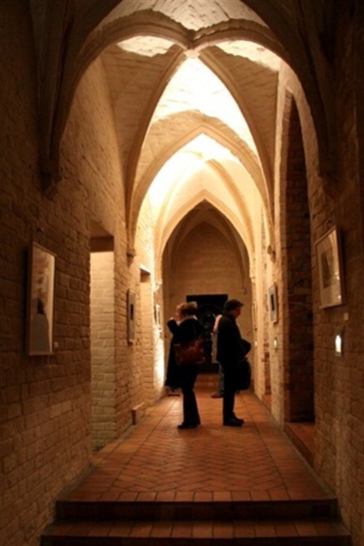 Die Kreuzgänge der HMT wurden durch geschickte Beleuchtung fantastisch in Szene gesetzt, sodass schon allein die räumliche Atmosphäre den Besuch wert gewesen wäre. Der eigentliche Grund dafür sind jedoch die zahlreichen Fotografien, die an den kahlen gemauerten Wänden aufgehangen wurden.