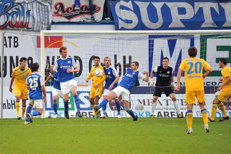 Auf der Gegenseite wird es in der 69. Minute gefährlich. Ken Reichel passt von links zentral vors Rostocker Tor, wo Kapitän Dennis Kruppke zur Stelle ist, den Ball aus etwa sechs Metern jedoch knapp über die Latte schiebt.