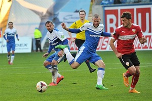 Langsam finden auch die Stuttgarter besser ins Spiel. Borys Tashchy köpft den Ball über den Rostocker Kasten (25. Minute). Zehn Zeigerumdrehungen später muss Johannes Brinkies eingreifen, als Markus Obernosterer es nach vorangegangenem Eckball mit einem Distanzschuss probiert.