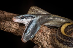 Die Schönnattern sind im Darwineum zuhause. Im Aquarium werden Kornnattern und Königsnattern gehalten und in den Vitrinen des Vogelhauses können die Besucher die Abgottschlange und die Königsphytons beobachten.