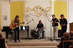 Musikalisch begleitet wurde die Preisverleihung von den Plastic Wings. Auch hier präsentiert sich die kulturelle Verflechtung. Ein Mitglied der medienwerkstatt hatte die Idee, ein Theaterstück über seine Lieblingsband, die Beatles, zu schreiben. Daraus entstand in Zusammenarbeit mit der HMT und dem Volkstheater das Stück „Lange Straße –Abbey Road.“ Und da natürlich die Pilzköpfe nicht selbst die Hauptrollen übernehmen konnten, wurde die Band Plastic Wings gegründet.