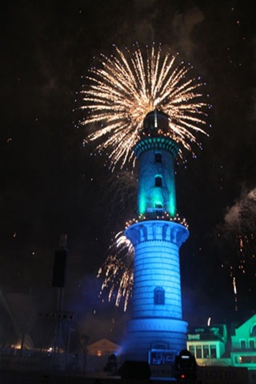 Pünktlich um 18 Uhr startet auch am 1. Januar 2011 wieder das traditionelle Spektakel aus Musik, Feuerwerk und Lasershow am Warnemünder Leuchtturm. Bereits zum 12. Mal wird am kommenden Neujahrstag der Leuchtturm symbolisch in Flammen gesetzt.