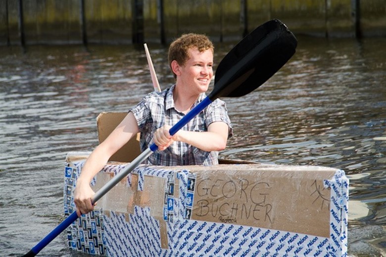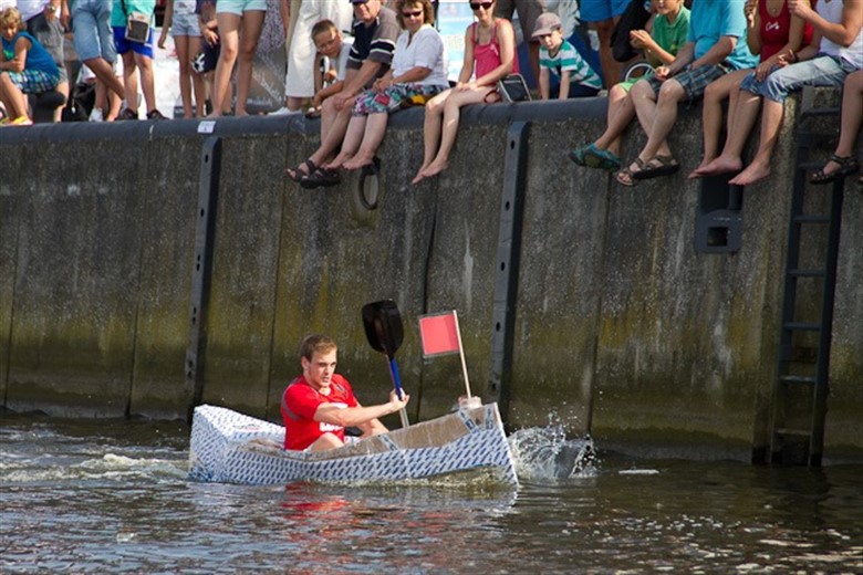 Spaßevent im Stadthafen: Boote aus Pappe und einer Menge Klebeband widersetzen sich dem Untergang