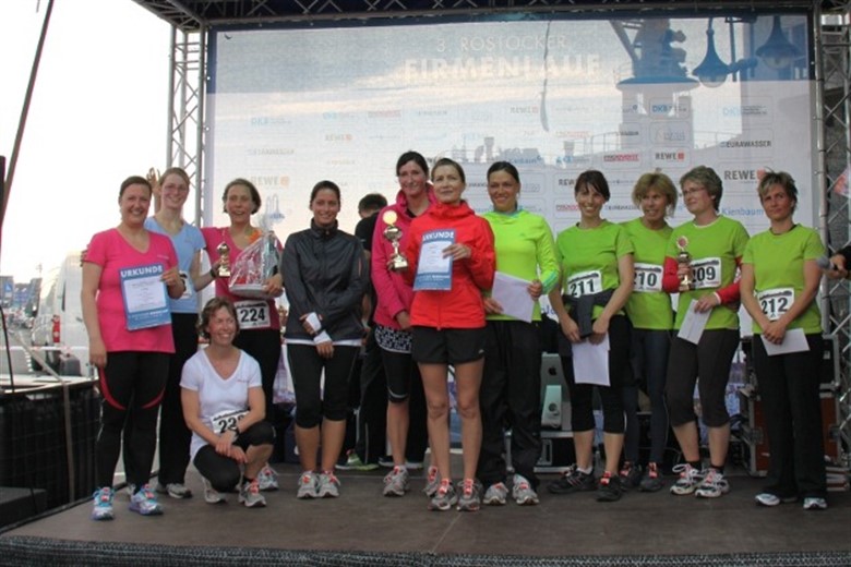 Nur acht reine Frauenteams starteten in diesem Jahr, dafür ging es bei ihnen deutlich knapper zu. Nur vier Minuten lagen zwischen den besten drei Mannschaften. Am schnellsten waren die Vorjahressieger „Amtshopper 2“ von der Arbeitsagentur Rostock, dicht gefolgt von der B·A·D Gesundheitsvorsorge und Sicherheitstechnik GmbH und den „Mrs. Sporty Powerfrauen.“
