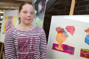 Künstlerische Talente sind aber nicht erst bei den Schülern der oberen Jahrgangsstufen zu finden. Auch Grundschüler liefern schon bemerkenswerte Leistungen ab. Dazu kann sich auch Victoria zählen. Die Drittklässlerin gehört zu den Glücklichen, die es mit ihrer Malerei in die Kunsthalle geschafft hat. Einen leckeren Eisbecher hatte sie im letzten Schuljahr mit bunten Farben auf Papier abgebildet. „Ich male auch gern Bäume und Häuser,“ erzählt sie begeistert und findet es „cool“, wenn sie diese mit ihrer Fantasie selbst gestalten kann.