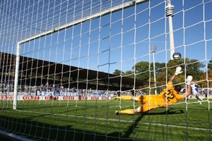 Von gutem Spielaufbau ist hüben wie drüben wenig zu sehen. Beide Mannschaften sind auf eine gute Defensive bedacht und so resultieren Chancen meist aus Standardsituationen. Nach einer Ecke von Marcos Alvarez haben die Gastgeber in der 17. Minute ihre erste große Chance, als Elia Soriano den Ball nur knapp am rechten Pfosten vorbeiköpft. Auf der Gegenseite stürmt David Blacha nach einer abgewehrten Flanke von Manfred Starke in den Strafraum der Hausherren und kommt am Elfmeterpunkt zum Schuss, jagt die Kugel jedoch über den Querbalken (18. Minute).
