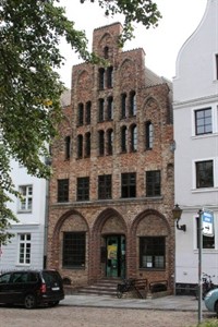 Ursprünglich war auch dieses Gebäude ein Bürgerhaus, das mit seiner ersten urkundlichen Erwähnung von 1376 sogar auf eine noch längere Geschichte als das Hausbaumhaus zurückblicken kann. Abermals erzählt das Holz hier eine spannende Geschichte. Forscher fanden heraus, dass Teile der ursprünglichen Bausubstanz aus der Renaissance noch erhalten sind. Die Kiefernbalken, die noch heute das Dach stützen, wurden ab 1423 auf Gotland gepflanzt und ab dem Jahre 1595 gefällt und verarbeitet.