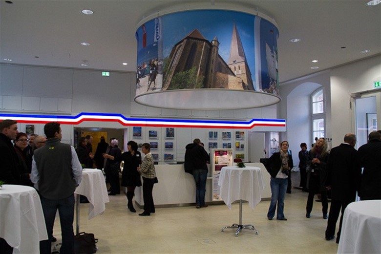 Ganz in Weiß, verziert mit einem Band in den Rostocker Farben blau, weiß und rot, präsentiert sie sich nun im Inneren auf einer Fläche von gut 180 Quadratmetern. Ein ausgestelltes Schiffsmodell weist auf den maritimen Charakter der Hansestadt hin. Bis zum Frühjahr sollen noch Plasmabildschirme eingebaut werden. Eine digitale Informationssäule vor dem Gebäude wird das Angebot der Einrichtung ergänzen.
