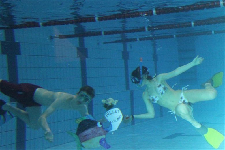 Mit speziell ausgerüsteten Kameras werden lustige Figuren im Wasser in Szene gesetzt. Besonders gelungene Fotos kommen anschließend in den Fotowettbewerb, der während des Treffens durchgeführt wird.