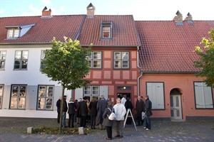 Weiter ging es zur Michaeliskirche und zur Alten Stadtschule, in der schon der Vater Karl und ganz kurz auch Walter Kempowski selbst das Einmaleins gelernt hatten. Unweit davon befindet sich das Kriegerdenkmal. Zu Walter Kempowskis Zeiten war dies ein beliebter Treffpunkt der Jugend. Wer sich die Bronzetafeln am Obelisk genauer anschaut, kann die Namen Pingel und Topp entdecken, die er im Roman „Tadellöser und Wolff“ verewigt hat.