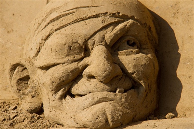 Doch Vorsicht ist geboten. Irgendwann knirscht der Sand und bricht unter seinem Gewicht zusammen. So geschehen bei der Piratenbraut von Störtebeker, die die Besucher der Sandwelt in der Nähe des Fähranlegers begrüßt. Dennoch hat der Pole Vyacheslav Borecki die schöne Freibeuterin nebst dem abgeschlagenen Haupt des sagenumwobenen Seefahrers als erstes fertigstellt.