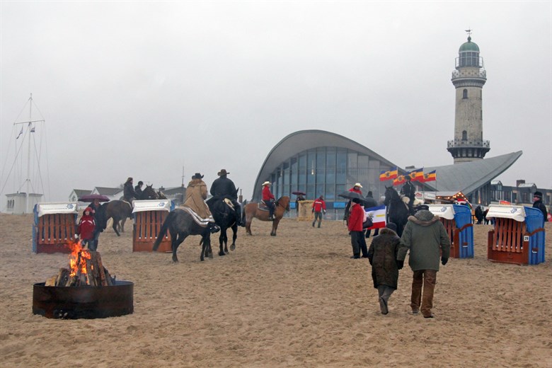 - 13.30 – 15.30 Uhr Winterreiten mit Warnemünder Fischfassrennen, Ausscheidungsrennen, Ponyreiten u.a. Aktionen am Strand