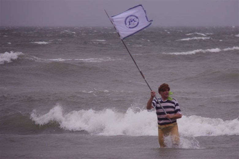 Begleitet (zumindest bis zum Wasserrand) von den heißen Samba-Trommel-Rhythmen der Sambucus percussionGroup, begaben sich Dutzende Verkleidete in Richtung Meer. Der Fantasie schien bei der Kostümierung rein gar nichts im Weg gestanden zu haben. So reihten sich zum diesjährigen Thema „Tanz auf dem Meer“ Teufelsgestalten neben Prinzessinnen und Bienen an. Ein richtiges Kuddelmuddel.