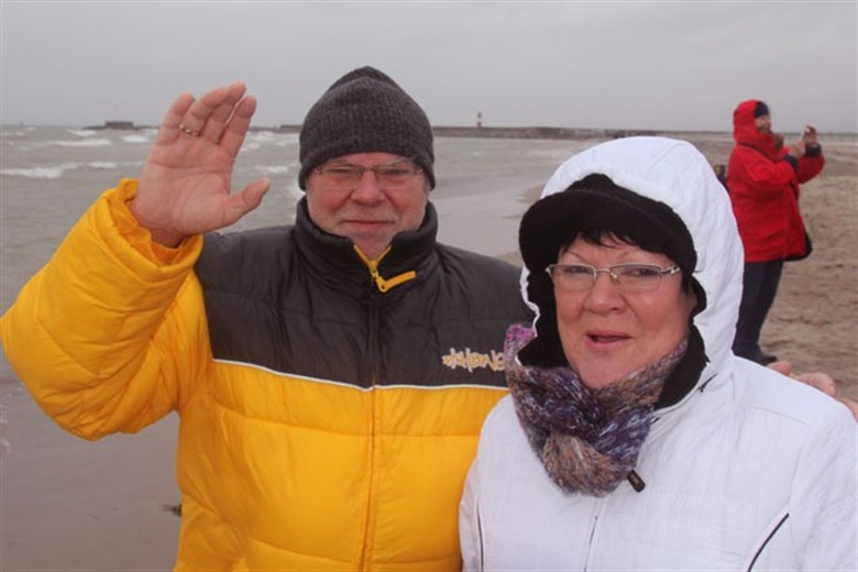 Und diese sind nicht etwa animalischen Ursprungs. Sie dürften wohl zu den Mutigsten und Waghalsigsten unserer Region gehören. Sie trotzen Sturm und Nässe genauso wie ich, doch sie tun es in der Ostsee. Ihr habt richtig gehört – IN der Ostsee. Der Deutsche Wetterdienst meldete fröstelnde 3,1 °C Wassertemperatur, doch keiner ließ sich davon abschrecken. Auch ein paar mutige Besucher ließen sich dazu überreden, ins kühle Nass zu tauchen. Denn immerhin winkte nach dem Überleben ein Erlass der Kurtaxe für das gesamte Jahr 2011.