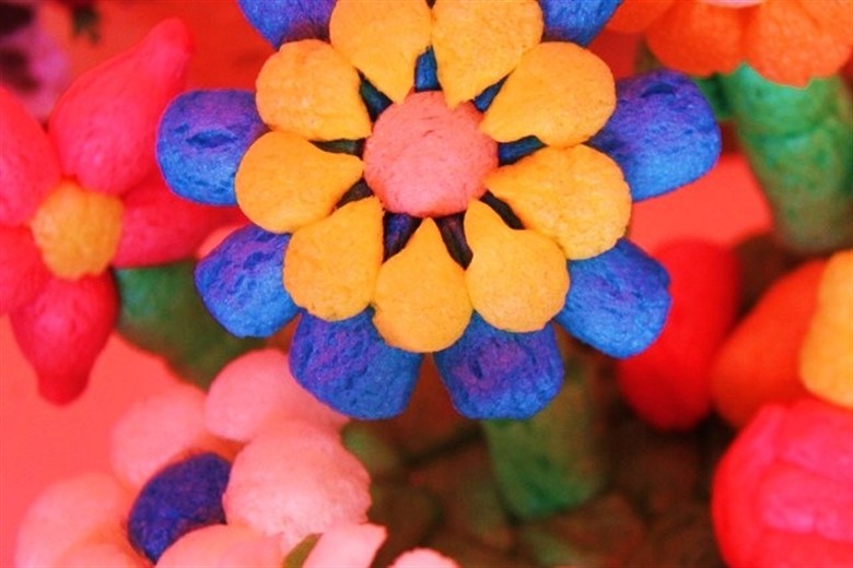 Mit ein wenig Wasser angefeuchtet klebten die kleinen farbenfrohen „Maiskörner“ tatsächlich aneinander, wie der Selbsttest bewies.